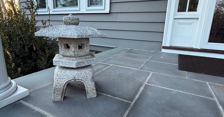 The house in Andover, Massachusetts, where I used to visit her. I recognized the patio, backing up on a bird sanctuary. I recognized the Japanese lantern she kept in her garden.