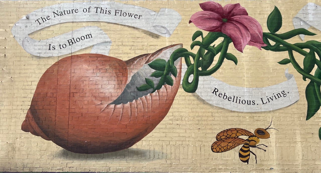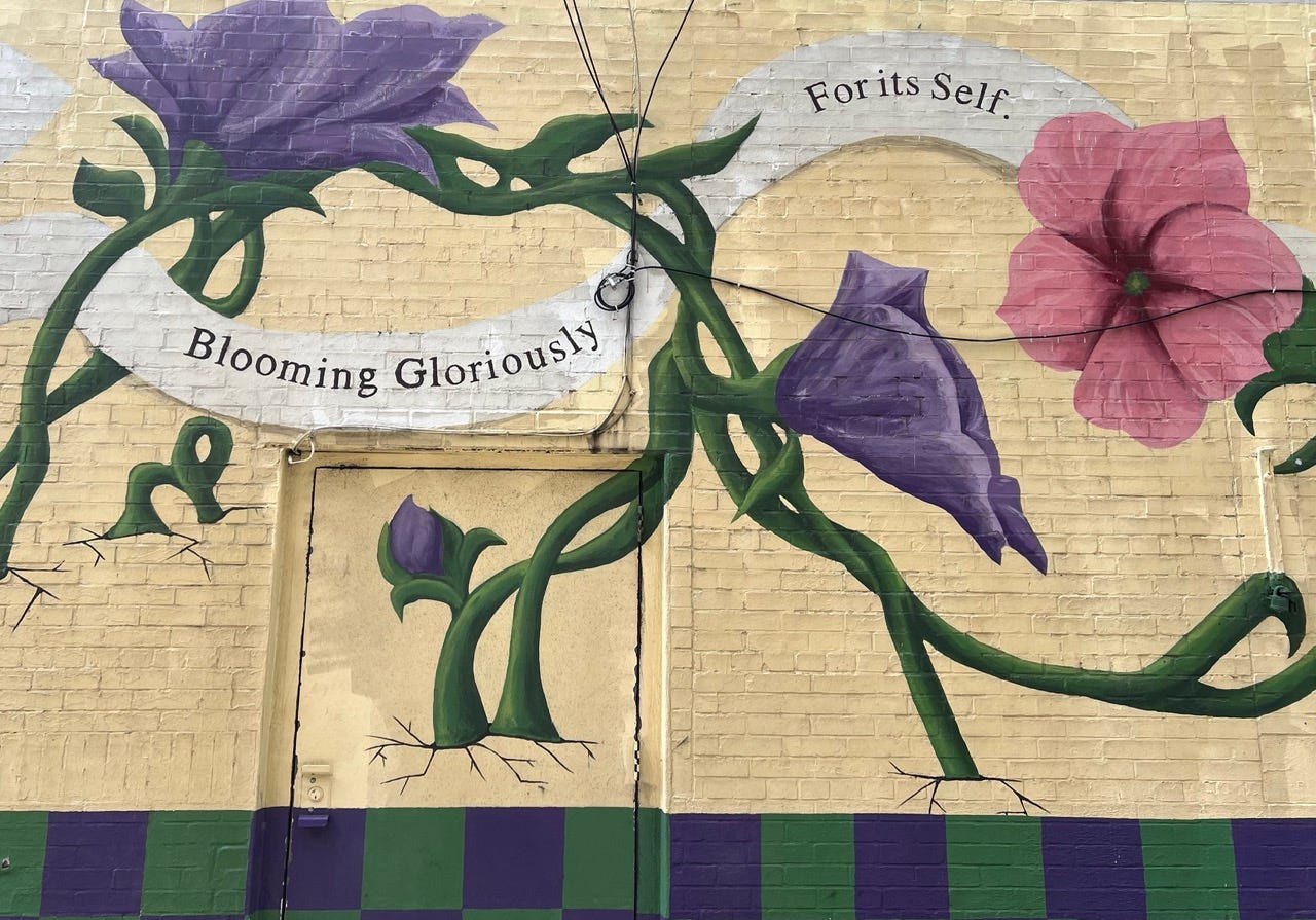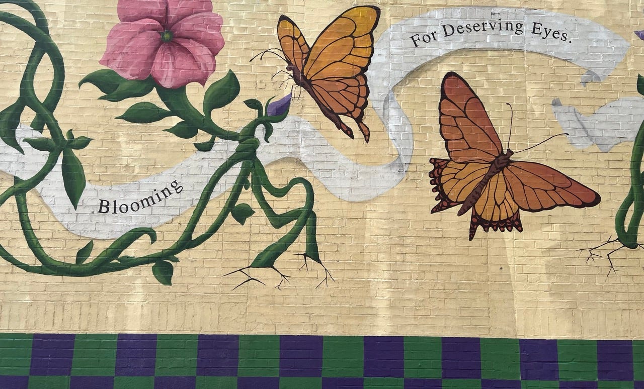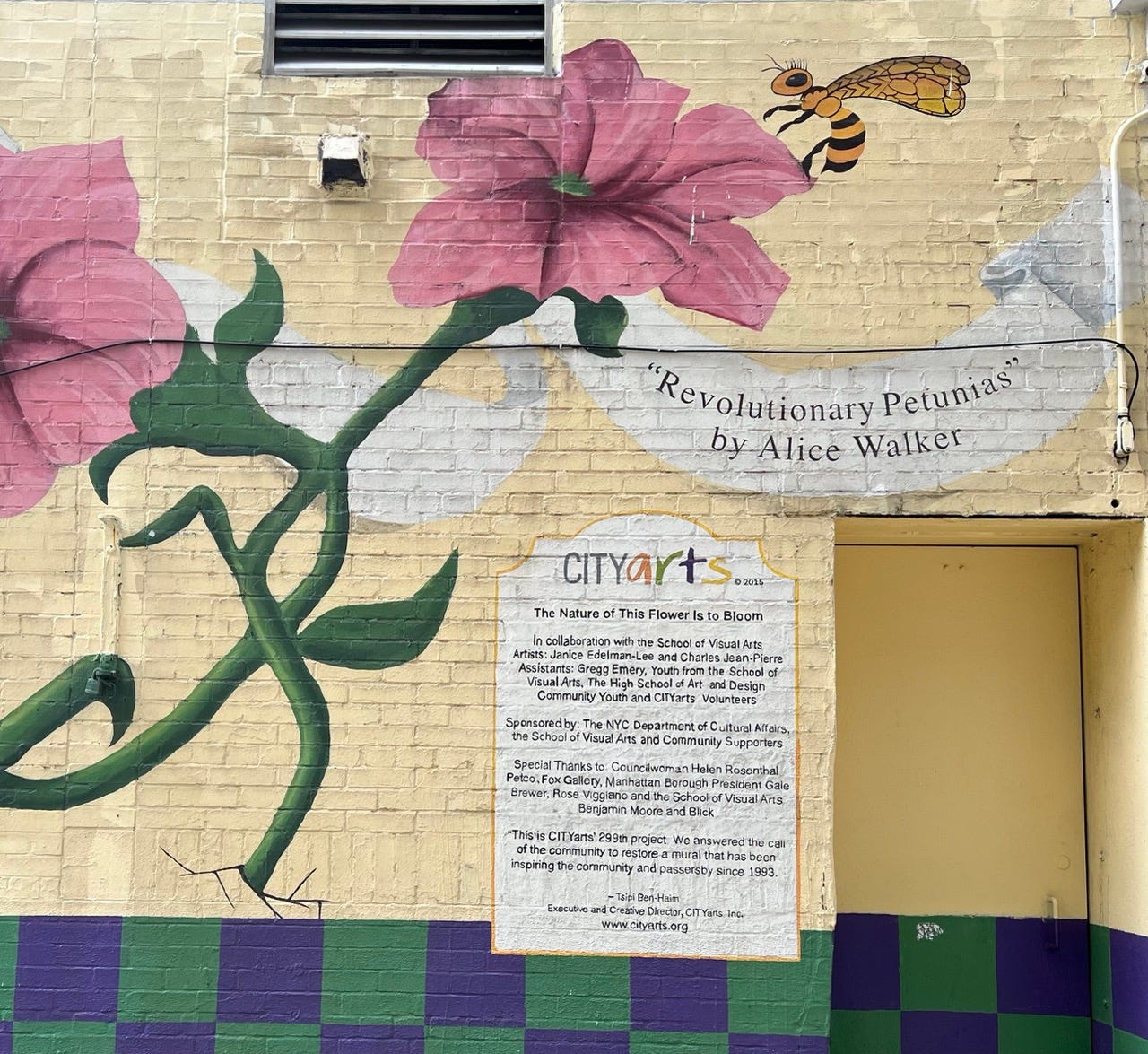 Alice Walker’s words, amplified by striking pinks, purples, and greens, stopped me mid-stride.
